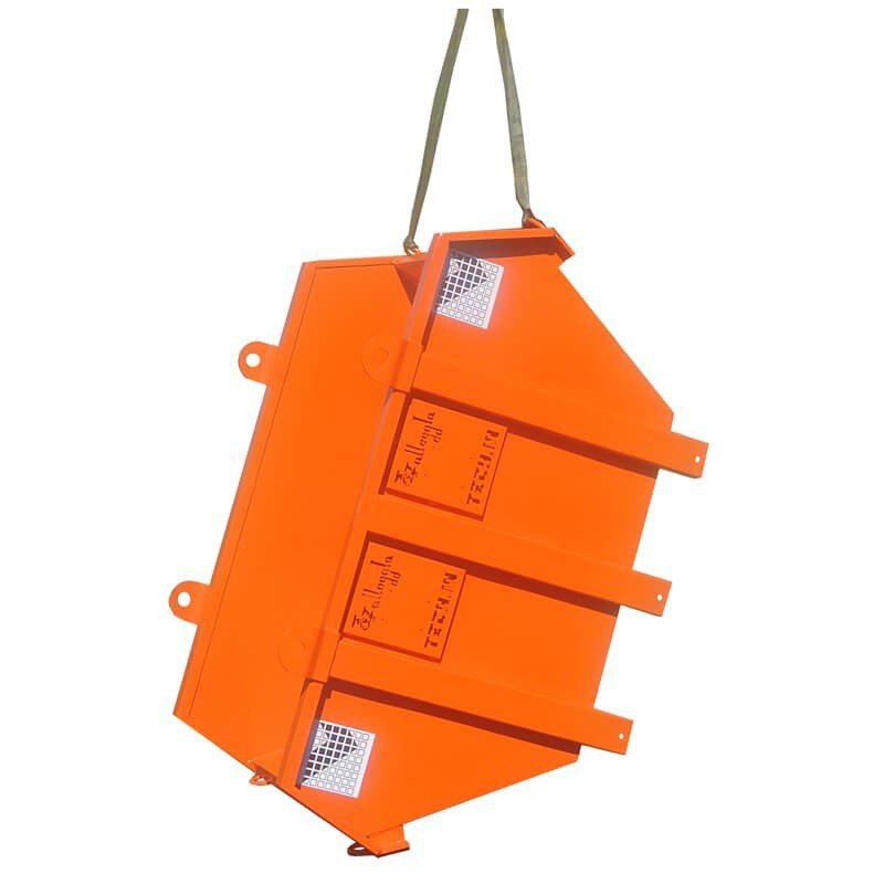 Assicurandola agli appositi occhielli, sarete in grado di spostarla e rovesciarla tramite gru da cantiere, gru da camion o carroponte.