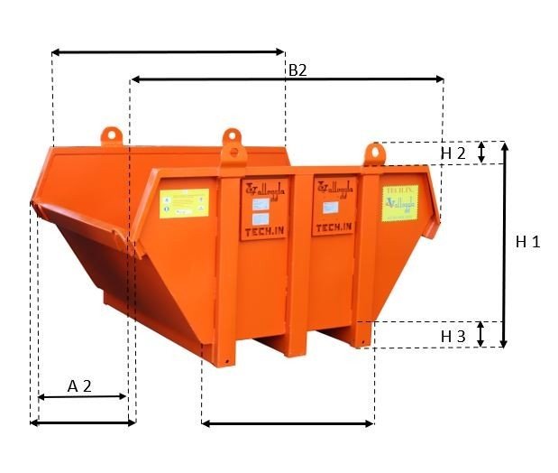La tramoggia è un cassone aperto e ribaltabile, di costruzione robusta e con profili di rinforzo.